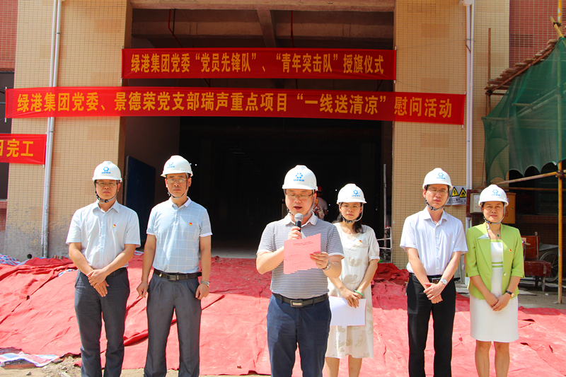當(dāng)天,驕陽似火。綠港集團(tuán)黨委書記、董事長、總經(jīng)理龔國強(qiáng)莊重地給黨員們授予“黨員先鋒隊(duì)”紅旗,給青年突擊隊(duì)員們授予“青年突擊隊(duì)”紅旗,并提出了幾點(diǎn)要求:一是要緊緊圍繞項(xiàng)目建設(shè)開展突擊活動(dòng)。全體黨員干部和青年同志要充分發(fā)揚(yáng)不怕吃苦、勇于負(fù)重,敢打硬仗、能打硬仗的優(yōu)良傳統(tǒng),切實(shí)發(fā)揮“黨員先鋒隊(duì)”、“青年突擊隊(duì)”在“急、難、險(xiǎn)、重”任務(wù)中的生力軍作用。二是要把項(xiàng)目建設(shè)與錘煉黨員意志相結(jié)合。黨員干部和青年同志們要充分發(fā)揮模范帶頭作用,深入項(xiàng)目一線,了解項(xiàng)目建設(shè)困難,想方設(shè)法協(xié)調(diào)解決。要在項(xiàng)目建設(shè)中增強(qiáng)本領(lǐng)、錘煉意志、增強(qiáng)黨性,更好的服務(wù)入?yún)^(qū)企業(yè)建設(shè)發(fā)展。三是要充分發(fā)揮“黨建帶團(tuán)建”作用?!包h員先鋒隊(duì)”要引導(dǎo)和指導(dǎo)好“青年突擊隊(duì)”開展好項(xiàng)目建設(shè),黨員干部與青年同志們要相互關(guān)心,密切配合,充分發(fā)揮整體功能和團(tuán)隊(duì)精神,確保瑞聲廠房項(xiàng)目能在6月25日完工交付9號(hào)廠房、7月25日完工交付3、13號(hào)廠房的任務(wù)目標(biāo)。
