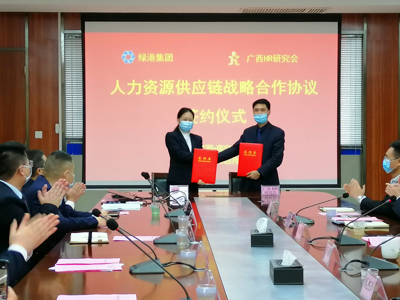 廣西人力資源研究會(huì)和綠港集團(tuán)簽訂人力資源供應(yīng)鏈戰(zhàn)略合作協(xié)議現(xiàn)場(chǎng)