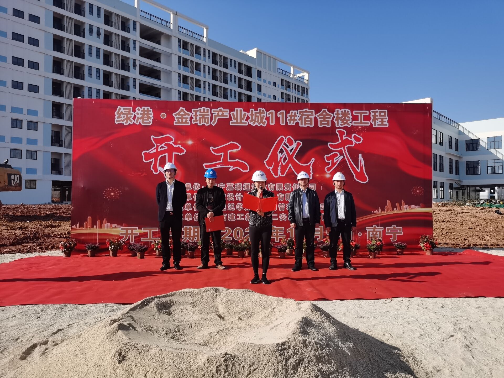 綠港集團黨委委員、副總經(jīng)理、營銷管理中心、嘉瑞通公司總經(jīng)理黃麗琴為儀式致辭并宣布綠港·金瑞產(chǎn)業(yè)城11#宿舍樓工程正式開工建設(shè)。她指出,項目在經(jīng)開區(qū)發(fā)展進程中具有里程碑意義,希望各參建方要履行承諾,精心組織,嚴格管理,圍繞項目開竣工目標,倒排工期,科學施工,確保項目高質(zhì)量、高水平、高效率推進。她表示,綠港集團將一如既往弘揚國企工匠精神,再造精品,為服務(wù)南寧工業(yè)高質(zhì)量發(fā)展提供強勁動能。