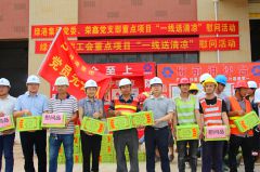 - 6月19日下午,集團(tuán)黨委書(shū)記、董事長(zhǎng)、總經(jīng)理龔國(guó)強(qiáng)帶領(lǐng)集團(tuán)領(lǐng)導(dǎo)班子,頂著烈日、迎著熱浪,來(lái)到集團(tuán)重點(diǎn)項(xiàng)目——瑞聲科技(南寧)廠房裝修工程(二期)施工現(xiàn)場(chǎng),親切慰問(wèn)看望在炎炎夏日中奮戰(zhàn)在項(xiàng)目建設(shè)一線的“黨員先鋒隊(duì)”、“青年突擊隊(duì)”隊(duì)員及各施工班組的建設(shè)者,送去了集團(tuán)黨委、集團(tuán)工會(huì)和榮鑫公司黨支部的關(guān)心和敬意,為他們加油鼓勁、提振士氣。